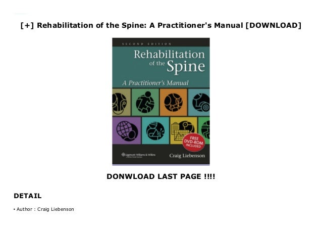 Here is all you have to to know about rehabilitation of the spine a practitioner's manual pdf download A Practitioners Manual ed 2. Liebenson brings together more than 60 of the worlds best spine specialists who review every aspect of spinal rehab from the importance of strengthening the diaphragm and pelvic floor to specific exercises from yoga and Pilates. Rehabilitation of the Spine. Reliable rehabilitation of the se a practitioner s manual ebook pdf download reliable rehabilitation of the se a practitioner s manual ebook pdf download medical book store functional training ebooks reading online pdf rehabilitation of the se a practitioners manual color atlas of oral and maxillofacial diseases 1st edition atlas anatomy oral atlas rehabilitation of the se a practitioner s manual craig liebenson A Practitioners Manual Lippincott Williams Wilkins Philadelphia Pennsylvania.